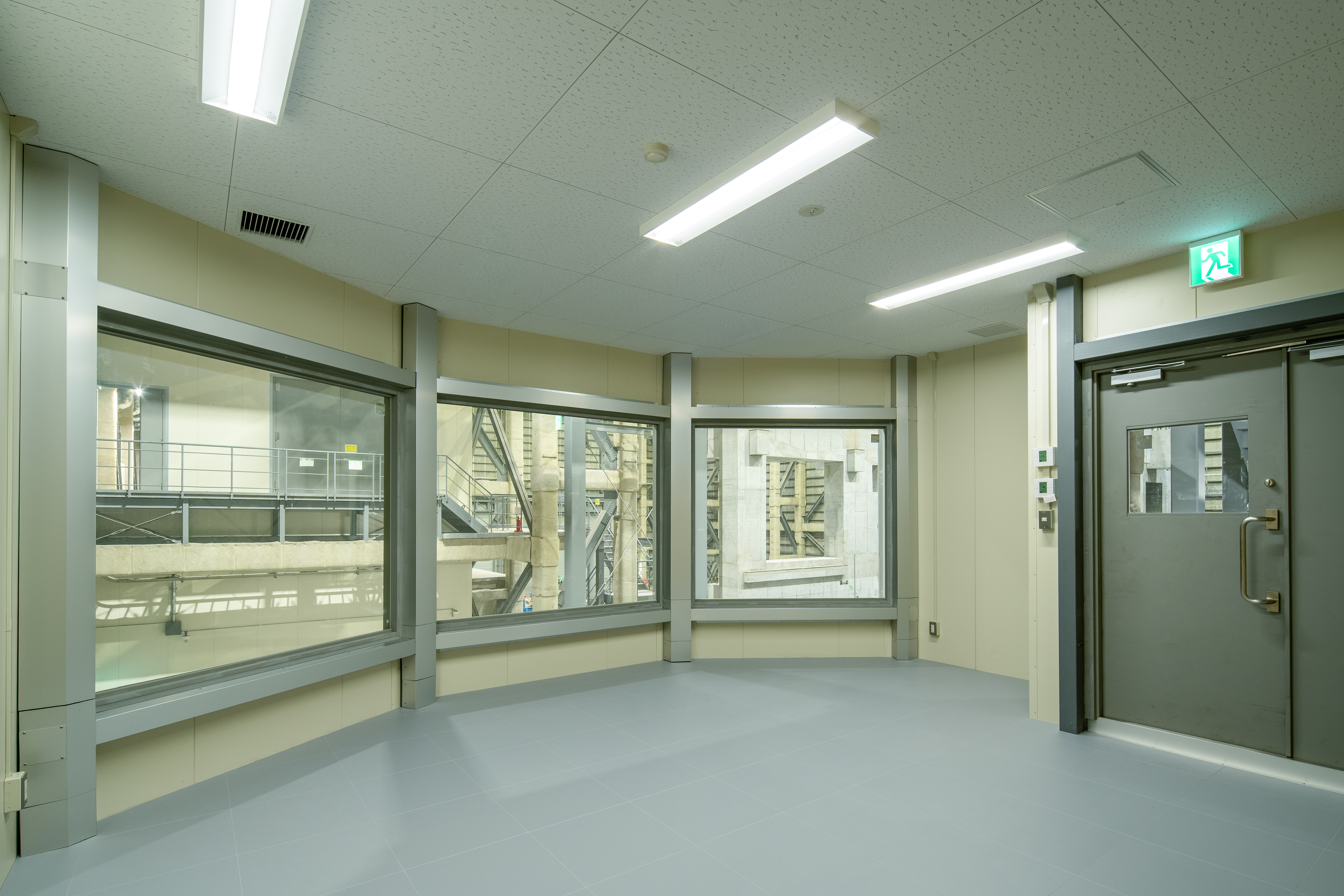 • 生産ラインの中枢を担う操作室は、耐熱ガラスの大型開口を設けました。