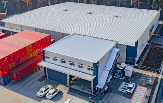 事務所棟には倉庫棟に隣接するように建築、物流倉庫のコントロールセンターとドライバーさんの控え室があります。 -