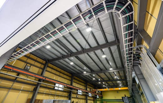 天井クレーンも設置し、シンプルで使いやすい工場内。
